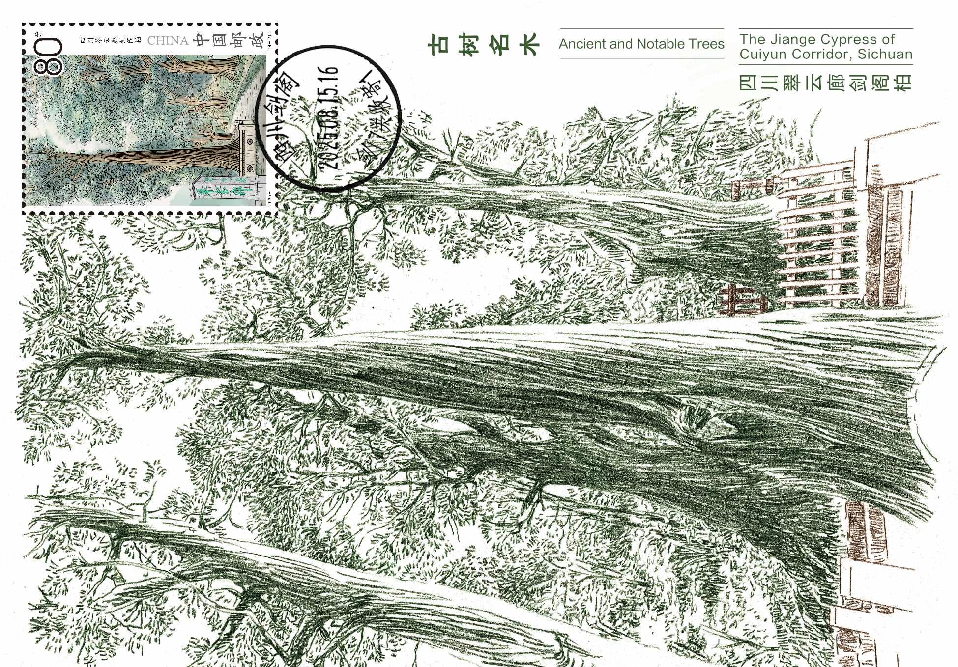 中国集邮有限公司于2025年8月15日发行《古树名木》极限明信片一套四枚,编号MC-144,盖销原地戳。