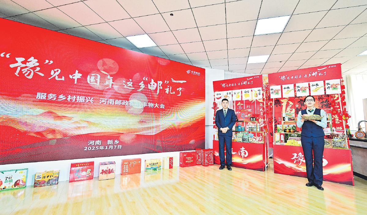 同日,河南邮政农品丰物大会在新乡举行,来自河南邮政豫东、豫西、豫南、豫北四个直播基地的主播推介本地优选的豫邮农品、特产好物,并通过直播抽奖方式送出河南特色农产品。活动现场,河南邮政还以短视频方式展示了全省各市的特色农业、优质农品,发布2025年在寄递物流、金融信贷、产销对接等方面的8项惠农服务大礼包。