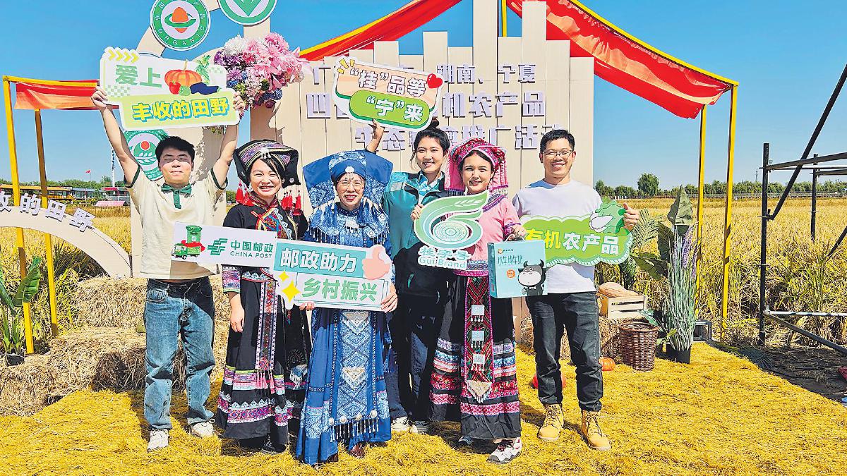 秋风拂过贺兰山,稻穗在阳光下摇曳。9月24日,由宁夏回族自治区农业农村厅举办的“爱上丰收的田野——广西、广东、湖南、宁夏绿色有机农产品生态疗愈推广活动”在宁夏银川稻渔空间乡村生态观光园启幕。活动中,宁夏区邮政分公司与广西壮族自治区贵港市邮政分公司携手,借助“919”邮政农品节契机,以“产品推介+电商直播”方式,打造助农新模式。