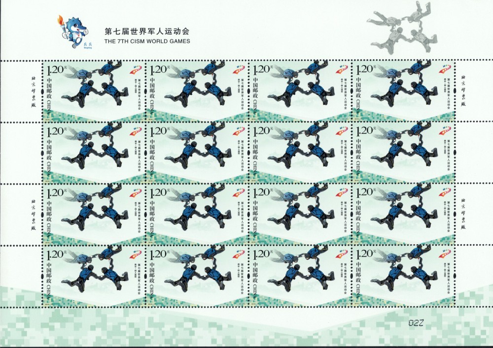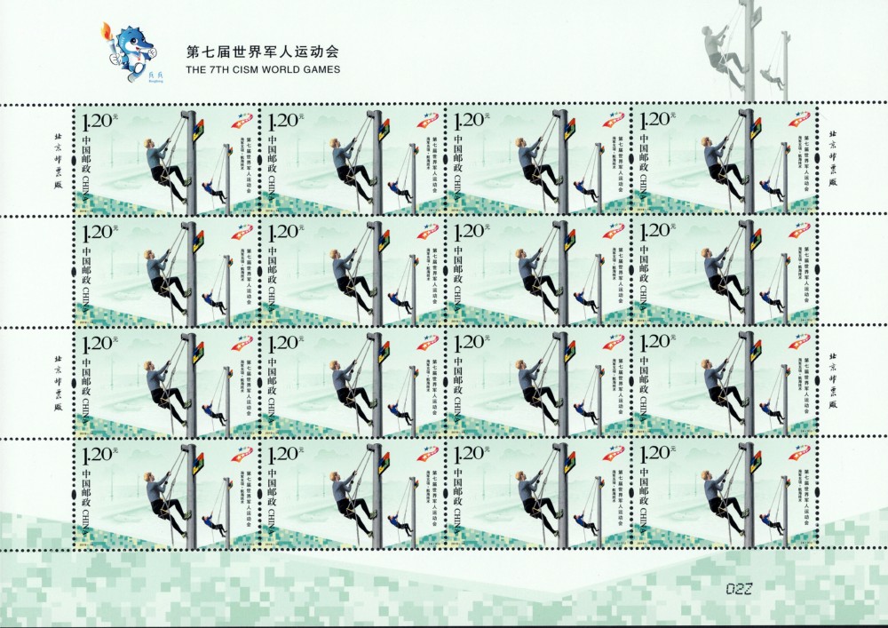 中国邮政定于2019年7月10日发行《第七届世界军人运动会》纪念邮票1套4枚。详情如下:
