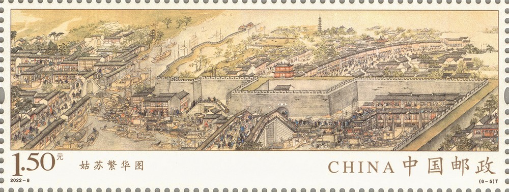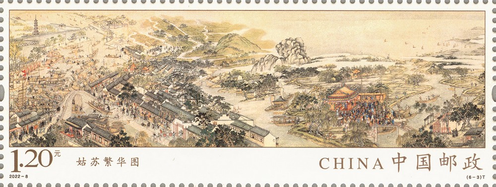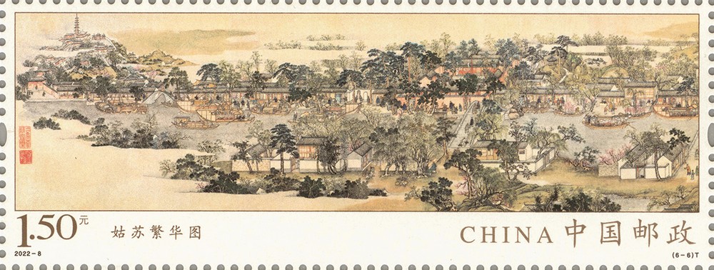 中国邮政定于2022年5月18日发行《姑苏繁华图》特种邮票1套6枚。详情如下: